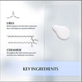 تحتوي التركيبة على Urea و Ceramide و عوامل ترطيب طبيعية NMFs أخرى تعمل على حبس الترطيب وترميم الحاجز الطبيعي الواقي للبشرة لمنع المزيد من فقدان الترطيب.