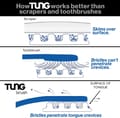 Tung-Brush has short bristles which create a lower profile for comfortable cleaning, even at the back of the tongue. The large, round head distributes bristles evenly for quick, effective cleaning of the entire tongue surface. Firm bristles for thorough cleaning of the soft, irregular surface of the tongue.